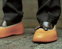 Kan någon tala om för mig vad som hände. En dag när jag kom ut genom dörrarna från kontoret, så uppenbarade sig kostymklädda män i någon form av olikfärgade Kajsa anka galoscher. Galoscher har jag alltid förknippat med äldre män som blivit lite för praktiska och struntar omgivningens tyckande och tänkande. När så en kollega till mig en morgon kom iförd röda galoscher, gul halsduk och orange mössa förstod jag att verkligheten var en annan. När jag sedan hade fått upp ögonen för detta färgglada fenomen, uppenbarar dom sig överallt, på män i kostymer, i modemagasin, i skyltfönster, men än så länge inte i min egen hall, för dit kommer dom inte. Jag äter upp mina egna ord och inspireras av detta, tänk så praktiskt detta måste vara i alla fall, om än många gånger fasansfullt stildödande. Till alla som ändå vill vara sjukt praktiska och bevara sina skor mot snöslasket, så kommer här dagens tips, galoscher finns även i svart :-)